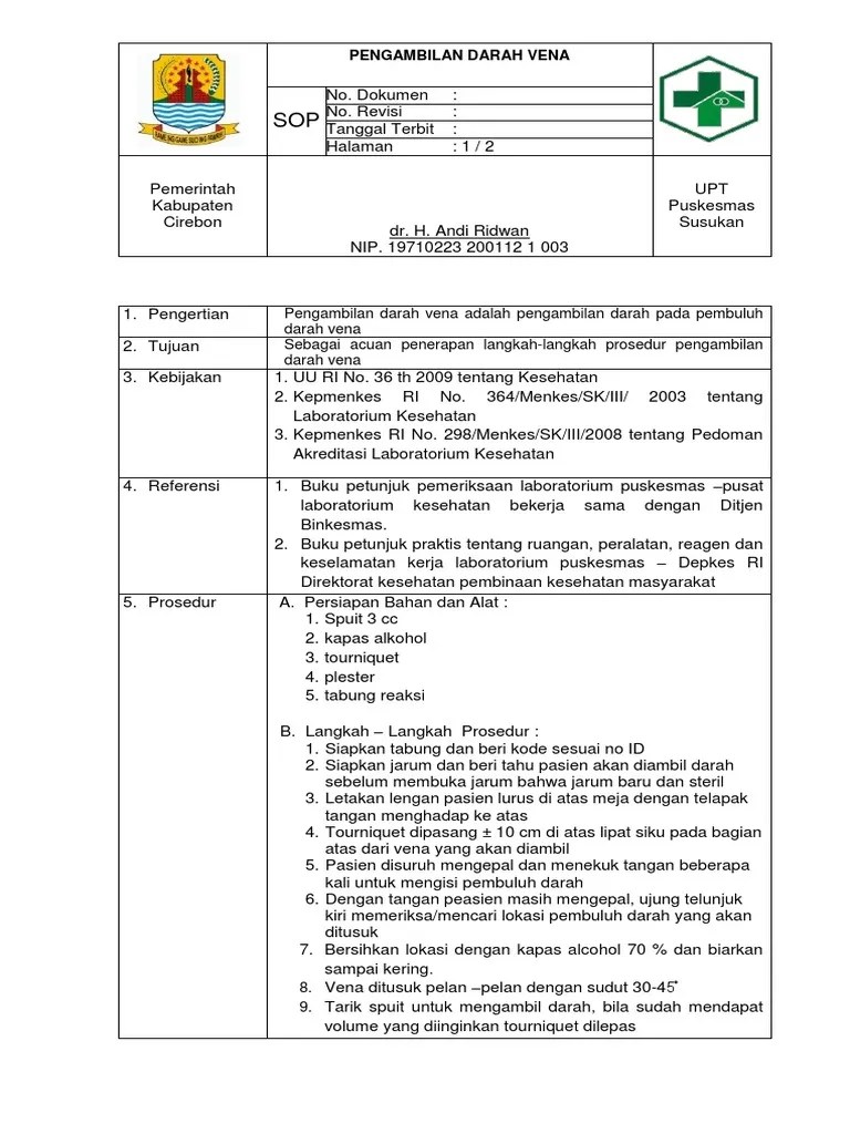 Sop Pengambilan Darah : Sop Pengambilan Spasimen Darah Vena Pdf : Membebaskan daerah yang akan di .. Standart operasional prosedur pemberian nutrisi parenteral sop untuk . Mengetahui teknik pengambilan darah knik pengambilan darah vevena dengan na . Standar operasional prosedur pengambilan darah. Cara pengambilan darah di arterideskripsi lengkap. Pemeriksaan dapat dilakukan melalui pengambilan darah astrup dari arteri radialis,.